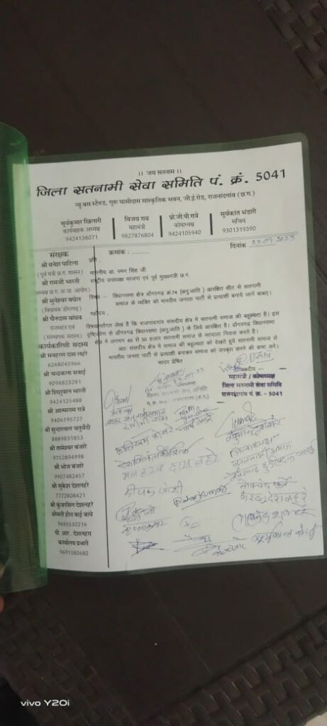 ????डोंगरगढ़ विधानसभा क्षेत्र क्र.74 से सतनामी समाज से भाजपा प्रत्याशी बनाने की रखी मांग।