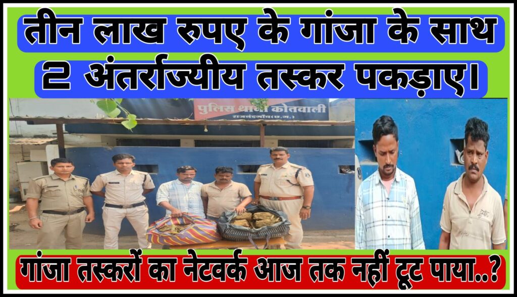 ????आगामी लोकसभा चुनाव के मददेनजर चुनाव प्रक्रिया निर्विघ्न, शांतिपूर्ण सम्पन्न कराने के उद्देश्य से असामाजिक तत्वों एवं अवैध गांजा, शराब एवं नशीले पदार्थो के बिक्री में संलिप्त लोगों के विरूद्व चलाये जा रहे अभियान के तहत दिनांक 19.04.2024 को मुखबीर से सूचना प्राप्त हुई कि राजनांदगांव बायपास के पास मेन रोड़ पर दो व्यक्ति गांजा रखकर बस का इंतजार कर रहे हैं, सूचना पर स्टाॅफ के द्वारा मौके पर पहुंचकर घेराबंदी कर पकड़े। नाम पता पूछने पर अपना-अपना नाम व पता 1) रमेश सेठी पिता नटवर सेठी उम्र 35 वर्ष निवासी अस्का थाना अस्का जिला गंजाम (उडीसा) 2) रूचिता कुमार गोड़ पिता तुगुर गोड़ उम्र 31 वर्ष निवासी प्लाट नं. 405 रूम नं. 01 कांशी नगर बमरोली रोड़ पांडेसरा जिला सूरत (गुजरात) बताये। तलाशी लेने पर दो थैला में कुल 40.700 कि0ग्रा0 मादक पदार्थ गांजा एवं नगदी रकम 1530 रूपये कुल किमत 3,21,530 रूपये मिला जिसे आरोपियों से पुलिस ने जप्त किया।