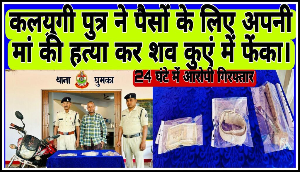 ????पैसों के लिए अपनी ही मां की हत्या कर घर के कुंए में फेंकने वाले आरोपी पुत्र को चंद घंटों में घुमका पुलिस ने किया गिरफ्तार।