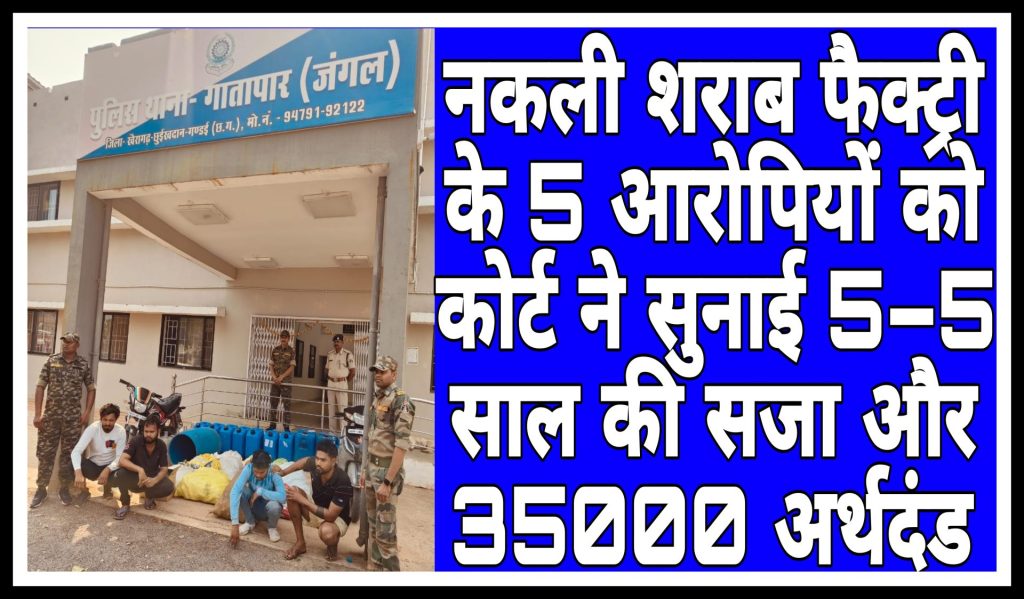????थाना गातापार क्षेत्रान्तर्गत नकली शराब फैक्ट्री प्रकरण के 05 आरोपियों को न्यायलय ने सुनाया 05-05 साल कारावास एवं 35-35 हजार रूपये अर्थदण्ड।