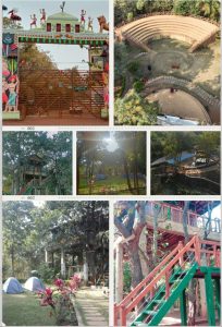 ????आकर्षण–बाल उद्यान, पर्यावरणीय शिक्षा प्रदान करने हेतु ओपर एयर थियेटर, पर्यटकों के रहवास हेतु 6 बिस्तरीय चार टेण्ट, दो बिस्तरीय एक ट्री हाऊस, जंगल सफारी, ट्री हाऊस, मड हाऊस, बाल उद्यान, पार्किंग, दिनभर की पर्यावरणीय शिक्षा, पाठ्यक्रम के दौरान विश्रांति एवं खान-पान हेतु चार पगोड़ा, एक फारेस्ट डायनिंग, एक फारेस्ट किचन एवं एक वाटरफाल व्यू पांईट का निर्माण किया गया है। प्रकृति से परिचय प्राप्त करने एवं पर्यटकों को वन भ्रमण कराने के उद्देश्य से तीन प्रकृति पथ मनगट्टा प्रकृति पथ, चतरेला प्रकृति पथ तथा पहाड़ीपाट प्रकृति पथ का भी निर्माण किया गया।