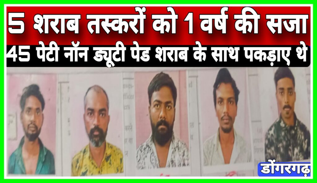 🔷आबकारी एक्ट के तहत 05 आरोपियों को न्यायिक मजिस्ट्रेट डोंरगरगढ़ के द्वारा 01 वर्ष की सजा।