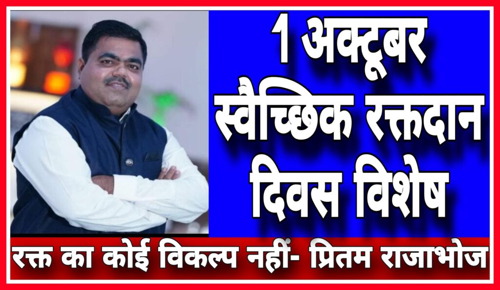 🔷1 अक्टूबर स्वैच्छिक रक्तदान दिवस विशेष आलेख- रक्तरत्न प्रितम राजाभोज