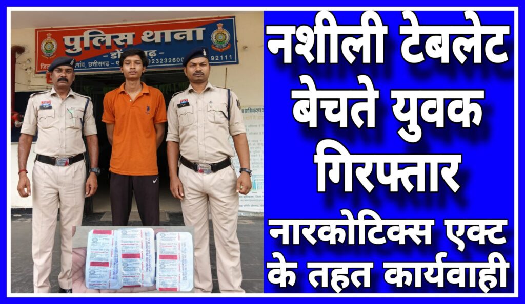 🔴डोंगरगढ़- दिनांक- 01.10.2025 को पुलिस को सूचना मिली की आरोपी दिव्यांश सिंग ठाकुर पिता देवी सिंग ठाकुर निवासी खुंटापारा डोंगरगढ़ द्वारा शहर क्षेत्र में घुम-घुम कर नशीली टेबलेट बेचता है जो केटीएम कंपनी की डियुक 390 काले रंग की मोटर सायकल क्र0- सीजी 04 पीबी 2307 में घुम रहा है। सूचना पर डोंगरगढ़ पुलिस तत्काल वैधानिक कार्यवाही करते हुये मुखबीर के बताये अनुसार घटना स्थल बोरतलाब रोड चिद्दो मोड़ के पास पंहूचकर घेराबंदी कर आरोपी को पकड़कर तलाशी लिया गया तो आरोपी के मोटर सायकल के सीट के नीचे एक पीले रंग के कैरी बैग में नीट्राजोम 10mg कुल 03 पत्ता प्रत्येक पत्ता में 10-10 नग टेबलेट कुल 30 नग नशीली टेबलेट मिला जिसे मोटर सायकल सहित व बिक्री रकम 550/-रू0 कोे जप्त कर आरोपी के विरूद्ध धारा- 21(ख) एनडीपीएस एक्ट की कार्यवाही कर आरोपी को गिरफ्तार कर ज्युडिशियल रिमाण्ड पर जेल भेजा गया है। प्रकरण विवेचनाधीन है प्रकरण में संलिप्त अन्य आरोपी की तलाश की जा रही है।