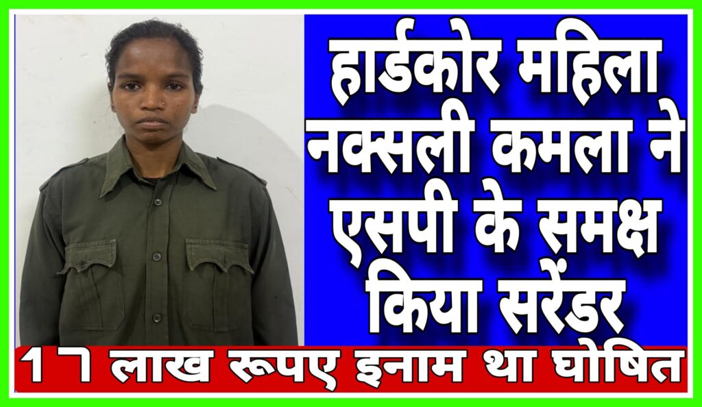 🔷17 लाख रुपये की इनामी हार्डकोर महिला नक्सली कमला सोड़ी उर्फ उंगी उर्फ तरूणा ने किया आत्मसमर्पण।