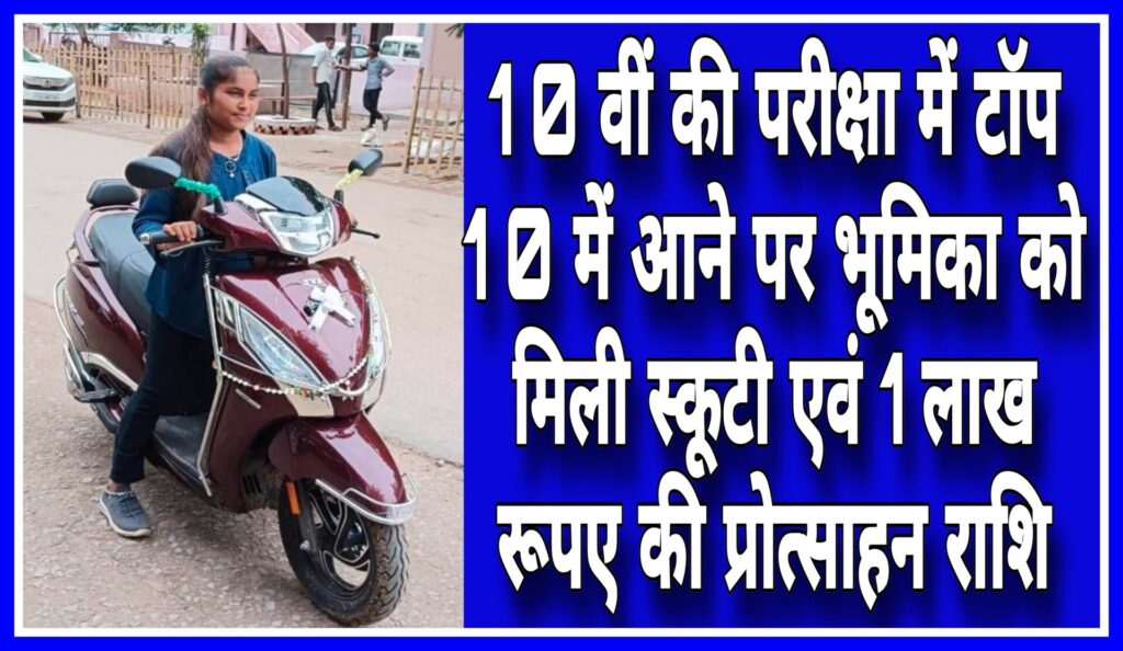 🔷मुख्यमंत्री नोनी बाबू मेधावी शिक्षा प्रोत्साहन योजना से भूमिका को मिली स्कूटी और एक लाख रूपए की राशि।