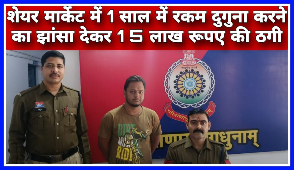 शेयर मार्केट में निवेश कर रकम दोगुनी करने का झांसा देकर 15 लाख रुपये की ठगी करने वाला आरोपी गिरफ्तार।