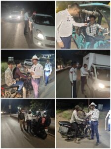 राजनांदगांव- यातायात प्रभारी नवरत्न कश्यप के नेतृत्व में आगामी होली पर्व को देखते हुए शहर में सड़क सुरक्षा सुनिश्चित करने के लिए विशेष अभियान चलाया जा रहा है। इस अभियान के अंतर्गत शराब सेवन कर वाहन चलाने वाले वाहन चालकों के विरुद्ध लगातार सघन कार्रवाई की जा रही है। यातायात प्रभारी ने बताया कि शराब सेवन कर वाहन चलाते पाए जाने पर न्यूनतम ₹10,000/- या उससे अधिक जुर्माने का प्रावधान है।