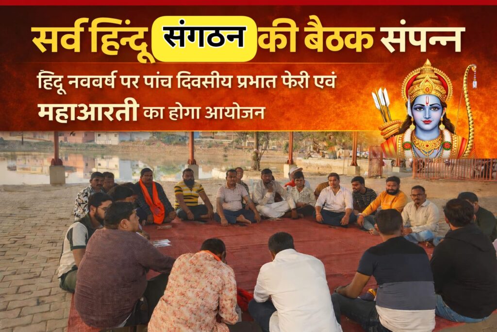 डोंगरगढ़- धर्मनगरी में आगामी चैत्र नवरात्री हिन्दू नववर्ष पर्व की कार्ययोजना हेतु बैठक महावीर मंदिर प्रांगण में सम्पन्न हुई जिसमें सर्व हिन्दू संगठन व समाज के तत्वावधान में 15 मार्च से 19 मार्च तक प्रतिदिन प्रातः 5.30 बजे पांच दिवसीय प्रभातफेरी अलग अलग केंद्र बिंदु मंदिर से निकालने का निर्णय सर्वसम्मति से लिया गया व 19 मार्च 2026 शुक्रवार को संध्या 6 बजे श्रीशिवराम मंदिर जयस्तंभ चौंक में संगीतमय हनुमान चालीसा, महाआरती व प्रसादी वितरण का कार्यक्रम तय किया गया उक्त कार्यक्रम में समस्त माताएं,बहने,युवा व समस्त सम्माननीय नागरिकों से अधिक से अधिक संख्या में उपस्थित होकर उत्साह व उमंग से हिन्दू नववर्ष मनाने हेतु आग्रह किया गया।