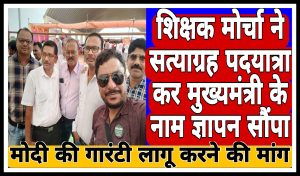 राजनांदगांव–शिक्षक मोर्चा ने राजधानी में दिखाई ताकत। मोदी की गारंटी लागू करने सत्याग्रह पदयात्रा कर मुख्यमंत्री के नाम ज्ञापन सौंपा। dgnewslive@