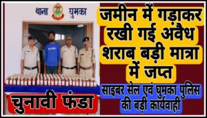 घुमका- पुलिस एवं सायबर सेल ने जमीन में गड़ाकर रखी 40 हजार ₹ की अवैध शराब जप्त की।।