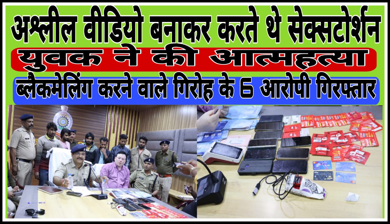 घुमका-अश्लील विडियो बनाकर युवक को आत्महत्या के लिए उकसाने वाले 6 आरोपी गिरफ्तार। पैसों के लिए करते थे ब्लैकमेल।