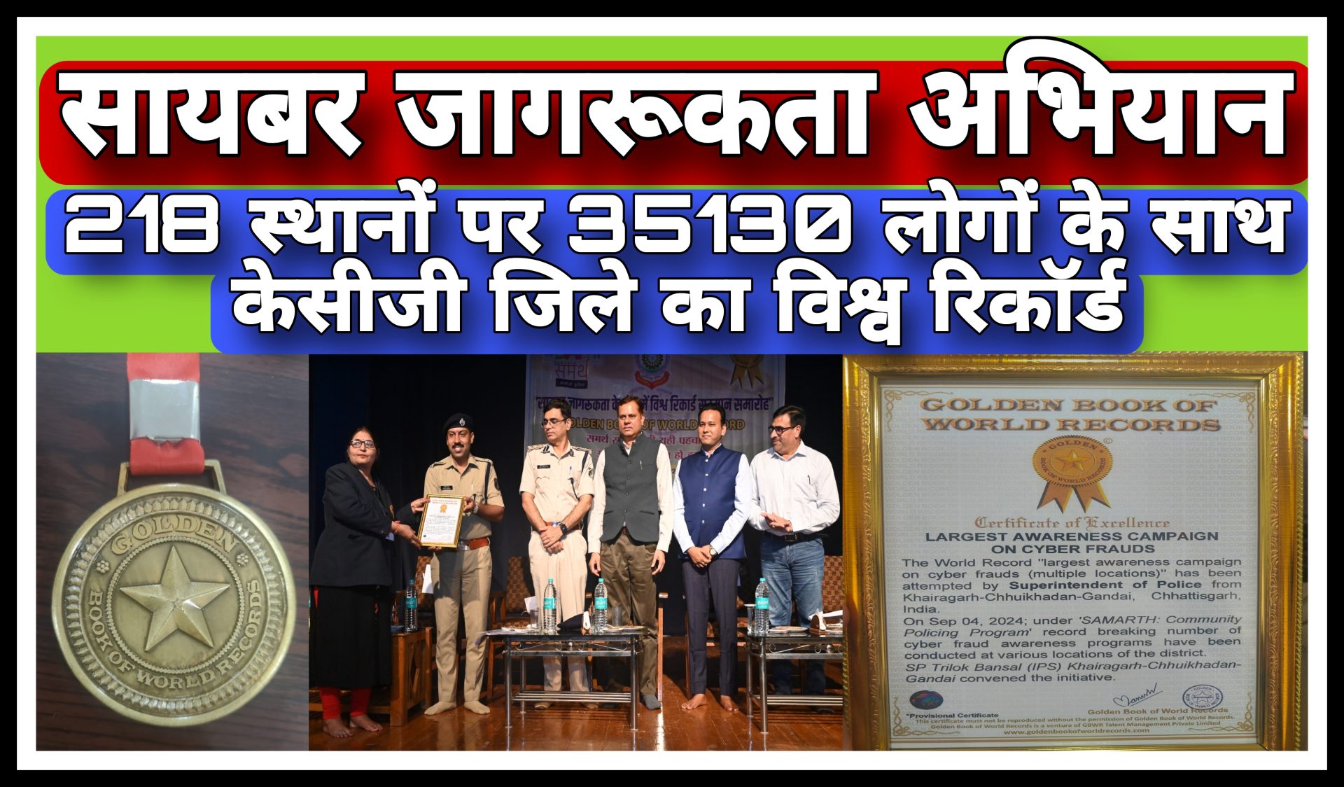 केसीजी-जिला पुलिस ने सायबर जागरूकता अभियान में बनाया विश्व रिकॉर्ड।