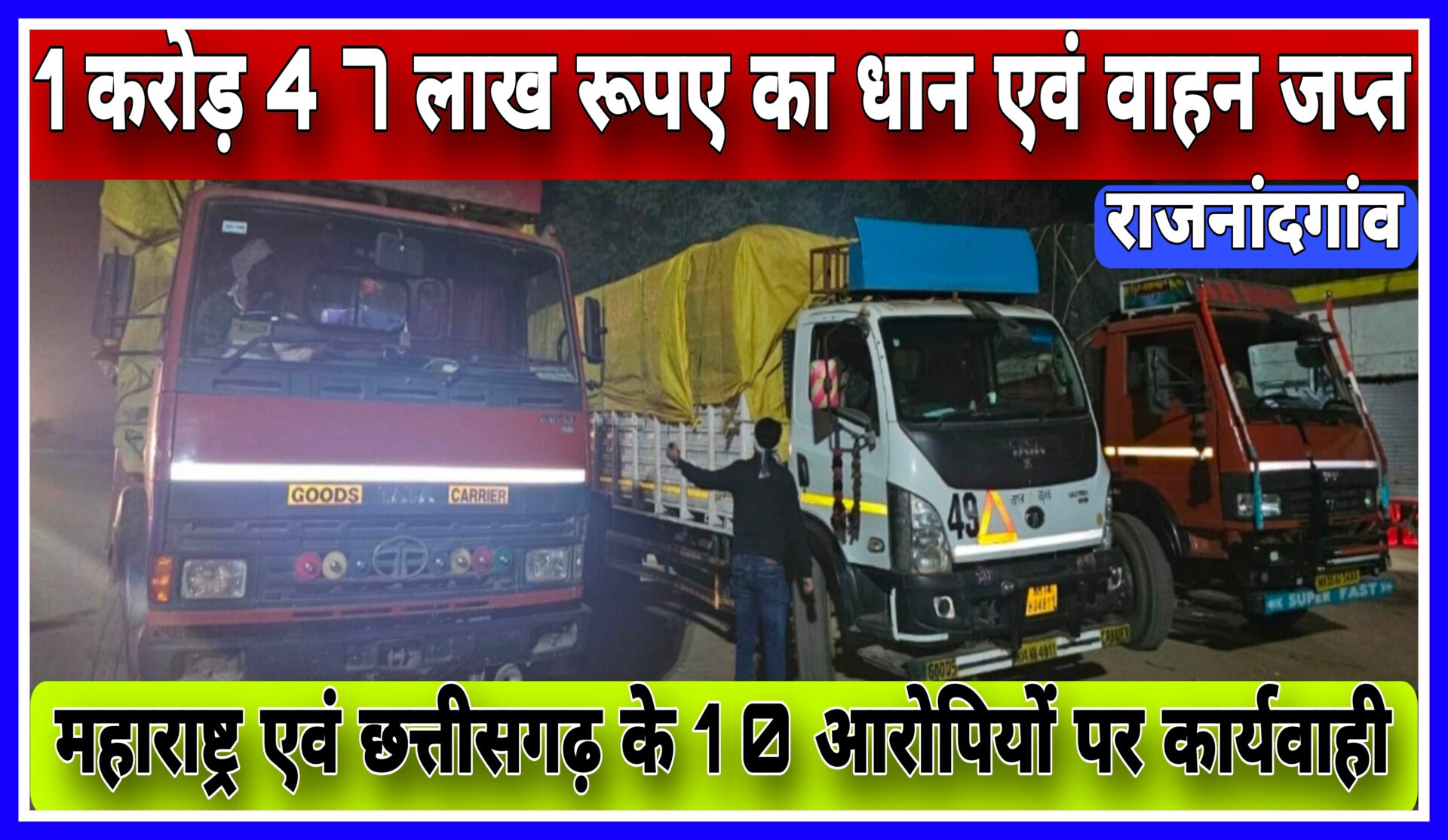 डोंगरगढ़ एवं महाराष्ट्र के #धान कोचियों एवं बिचौलियों पर कार्यवाही। 1 करोड़ से अधिक का धान एवं वाहन जप्त।